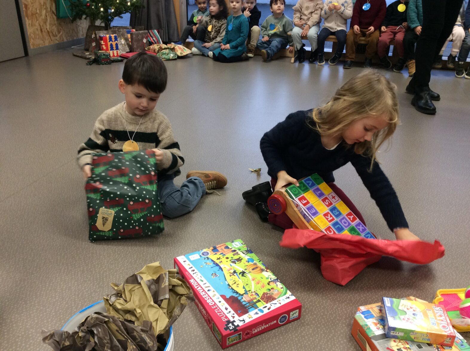 Mardi 10 juin, les élèves de la classe TPS-PS sont allés dans le joli parc de Mme Milin. Dès que le portail de sa propriété est franchi, le temps s’arrête, la ville disparaît pour laisser place à un magnifique espace vert avec ses arbres, ses plantes, ses fleurs, ses rondins de bois, ses cabanes. Quelle joie de faire la motricité dans un si joli cadre ! Patauger dans la rivière, faire le parcours sensoriel pieds nus, jouer avec les jeux fabriqués par Mme Milin, partir à la recherche des terriers des renards, jouer dans les cabanes, écouter les oiseaux, écouter une histoire racontée par Mme Milin … Les élèves ont pu entendre les chants de plusieurs oiseaux dont un pic vert qui tapait avec son bec sur le tronc des arbres. Avec son sifflet, Mme Milin a imité le coucou, la chouette, la mésange bleue … Et après le pique-nique bien mérité, temps de sieste ou de repos dans les cabanes, sur les cartons ou sur les bâches recouvertes de draps. Sans oublier les toilettes sèches et le lavage des mains avec l’eau des seaux et des arrosoirs. Une journée inoubliable qui nous rappelle que la nature est un bien précieux dont il faut prendre soin.