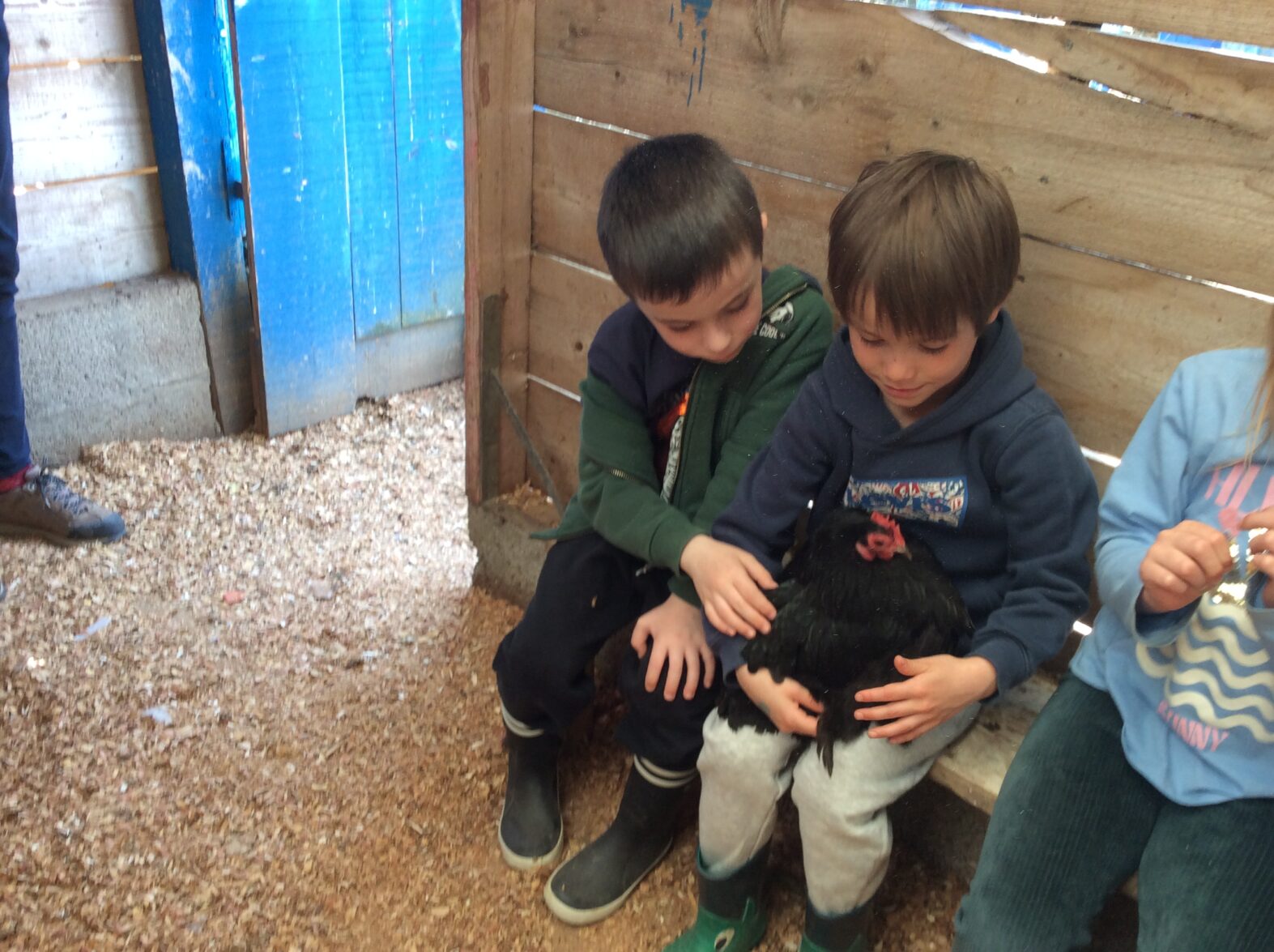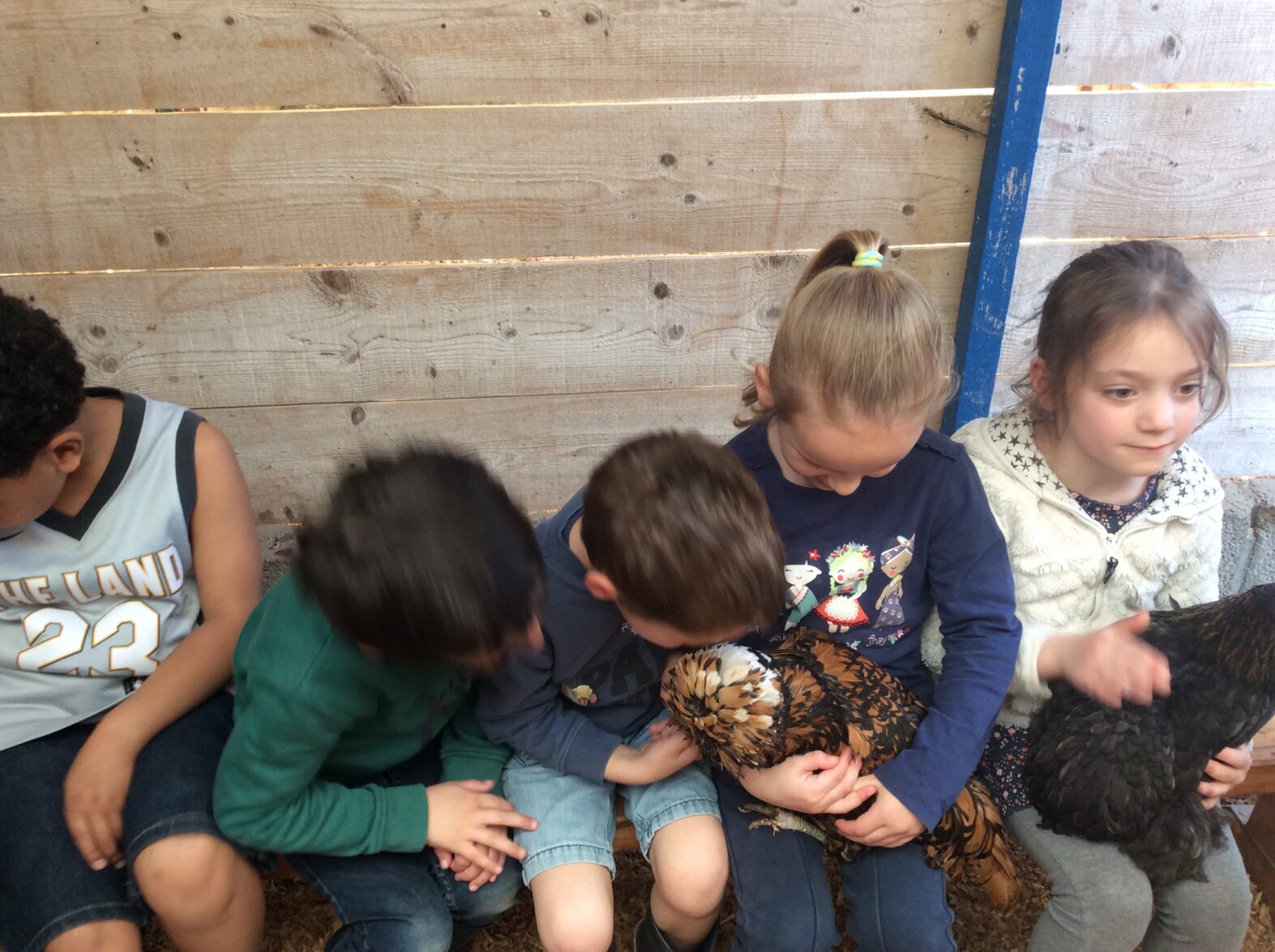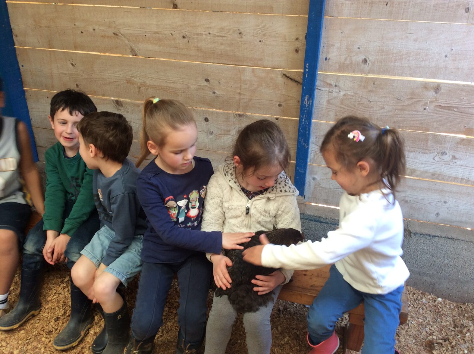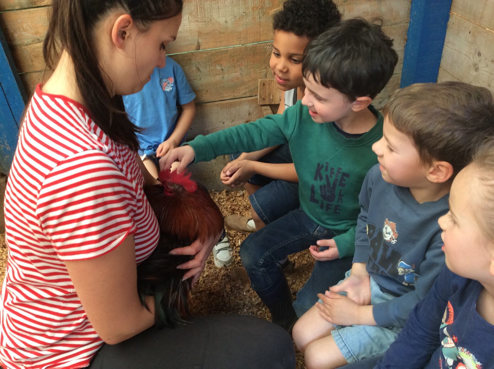 Mardi 7 avril les élèves de grande section se sont rendus à la ferme de la Ville Oger afin de de participer à un atelier sur le thème de la basse-cour. Au programme : connaissances générales sur les ovipares, cycle de reproduction, nourrissage (nous avons égrainé des épis de maïs, rajouté du pain rassis, de la farine de blé que nous avons moulue puis distribué tout ça dans la basse-cour aux oies, poules, canards, dindons et pintades). reconnaissance des différents œufs des volailles de la basse-cour…. Ce travail se poursuivra à la rentrée puisque nous aurons la chance d’avoir une couveuse en classe.