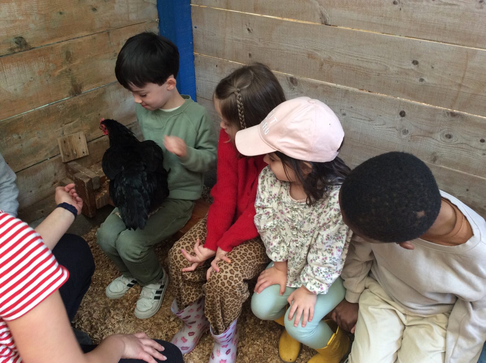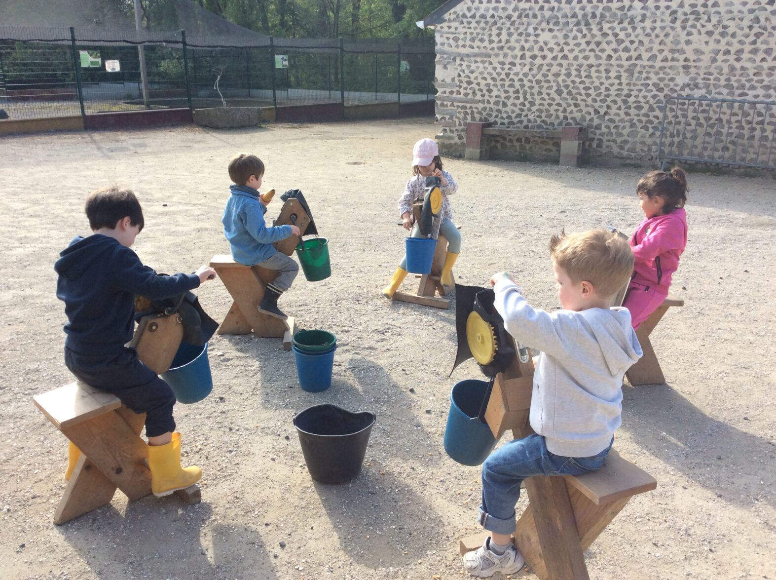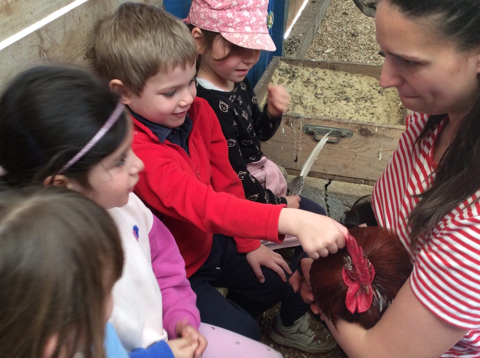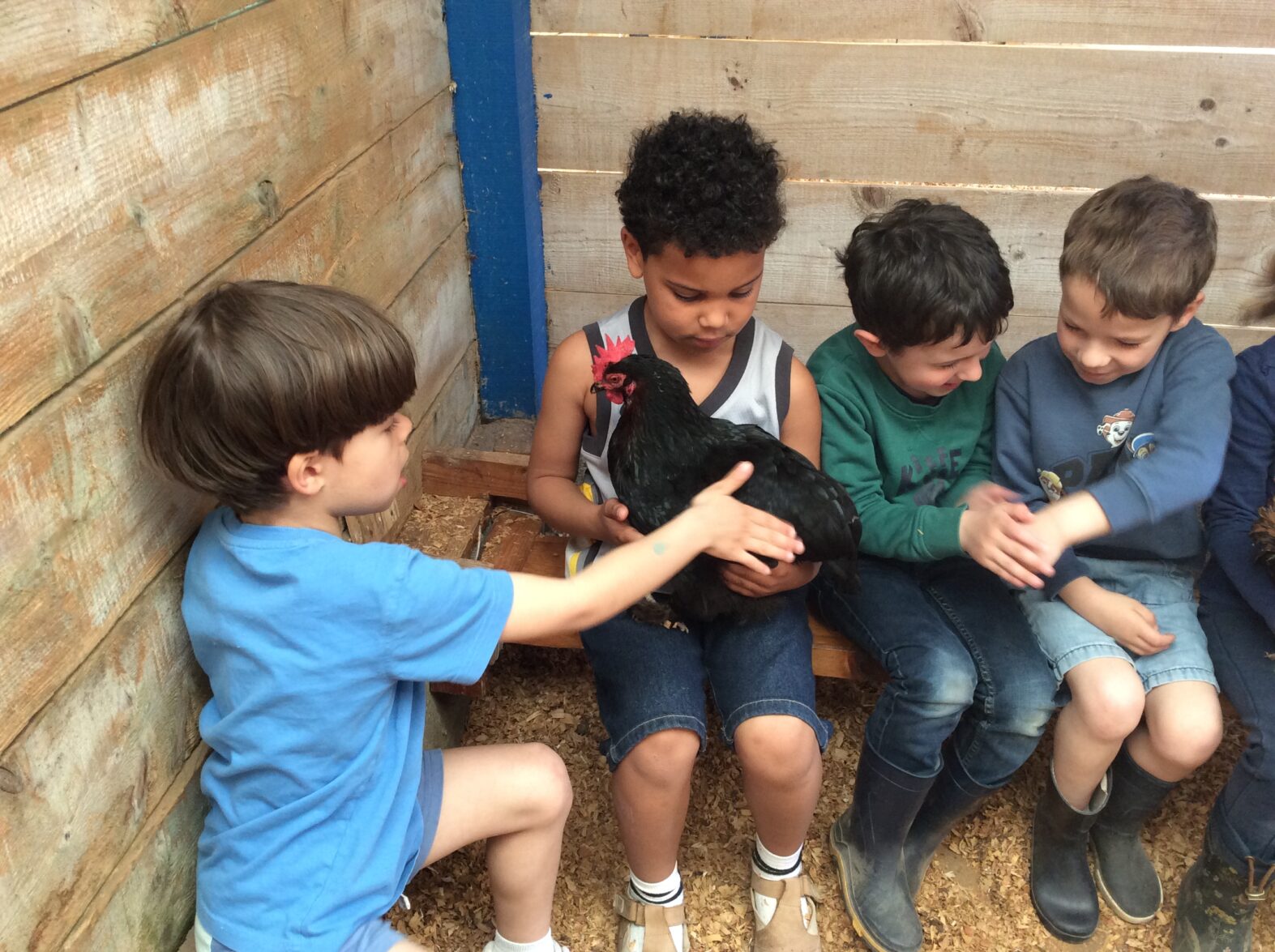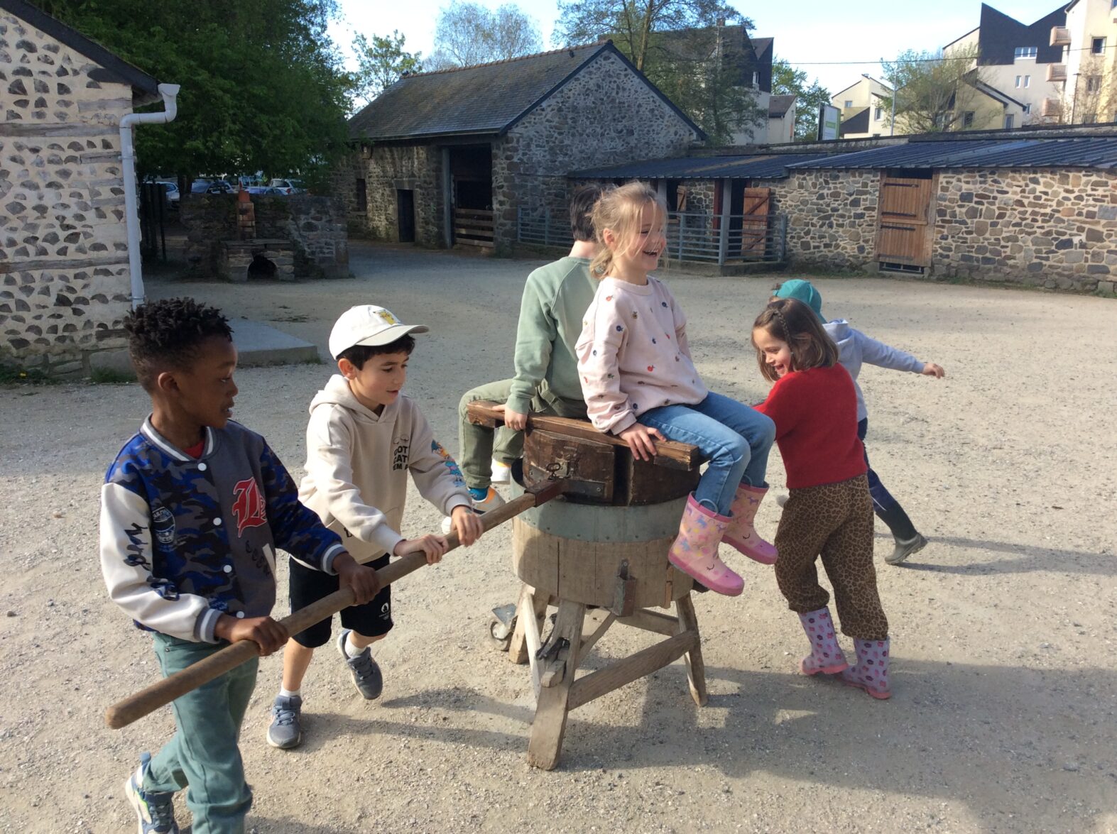 Mardi 7 avril les élèves de grande section se sont rendus à la ferme de la Ville Oger afin de de participer à un atelier sur le thème de la basse-cour. Au programme : connaissances générales sur les ovipares, cycle de reproduction, nourrissage (nous avons égrainé des épis de maïs, rajouté du pain rassis, de la farine de blé que nous avons moulue puis distribué tout ça dans la basse-cour aux oies, poules, canards, dindons et pintades). reconnaissance des différents œufs des volailles de la basse-cour…. Ce travail se poursuivra à la rentrée puisque nous aurons la chance d’avoir une couveuse en classe.
