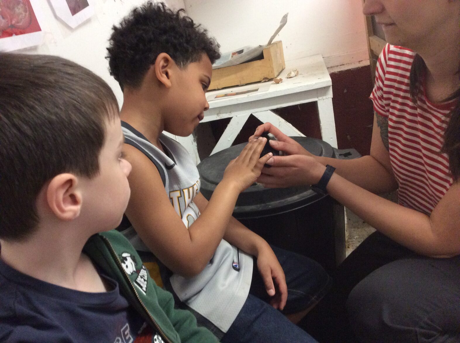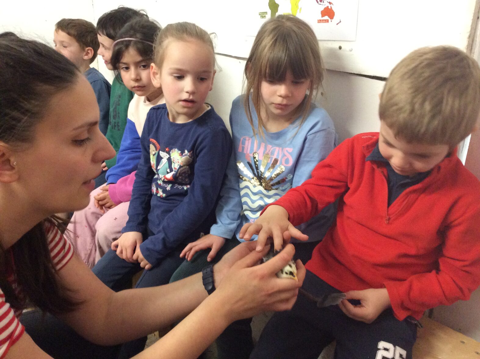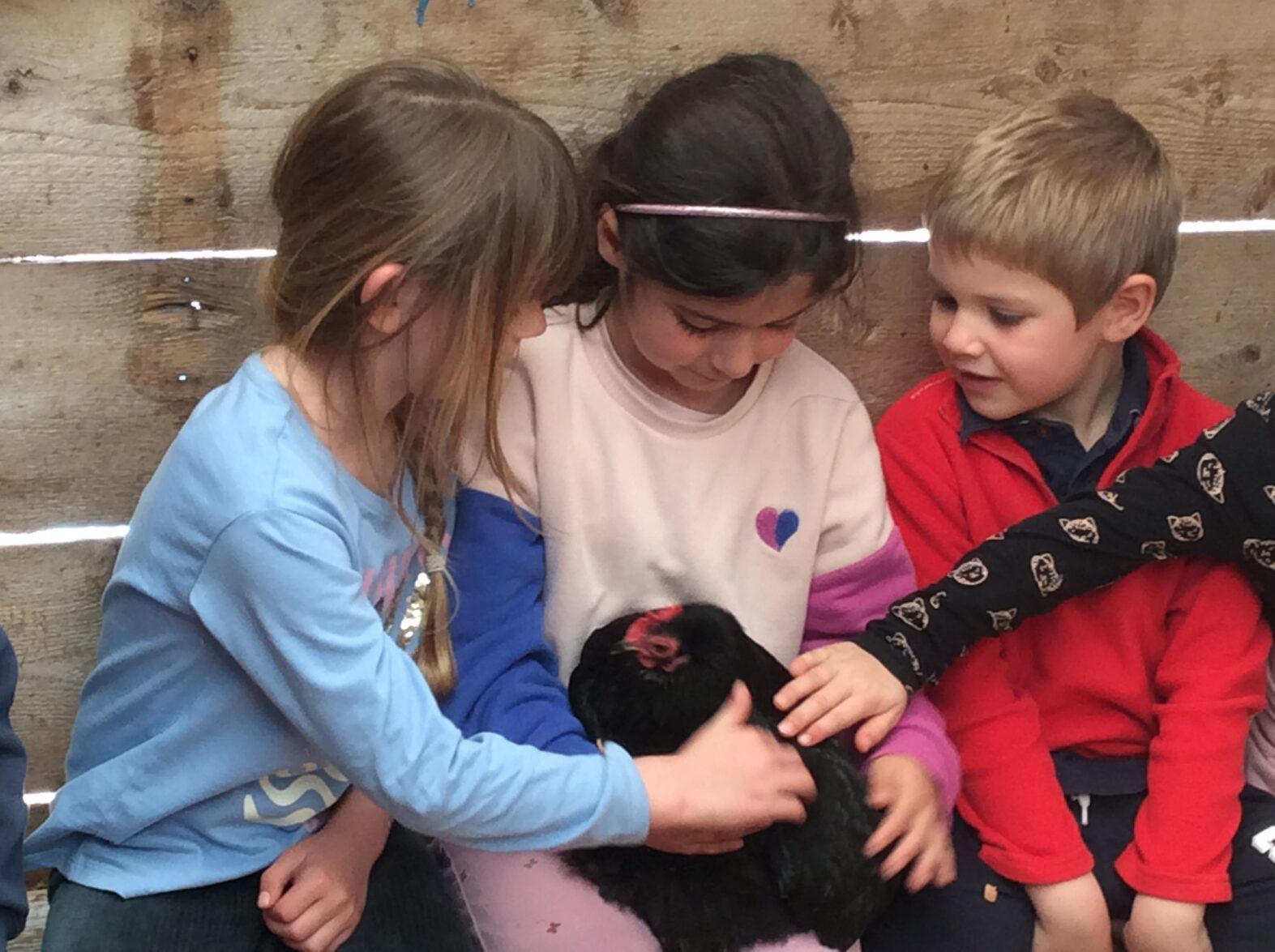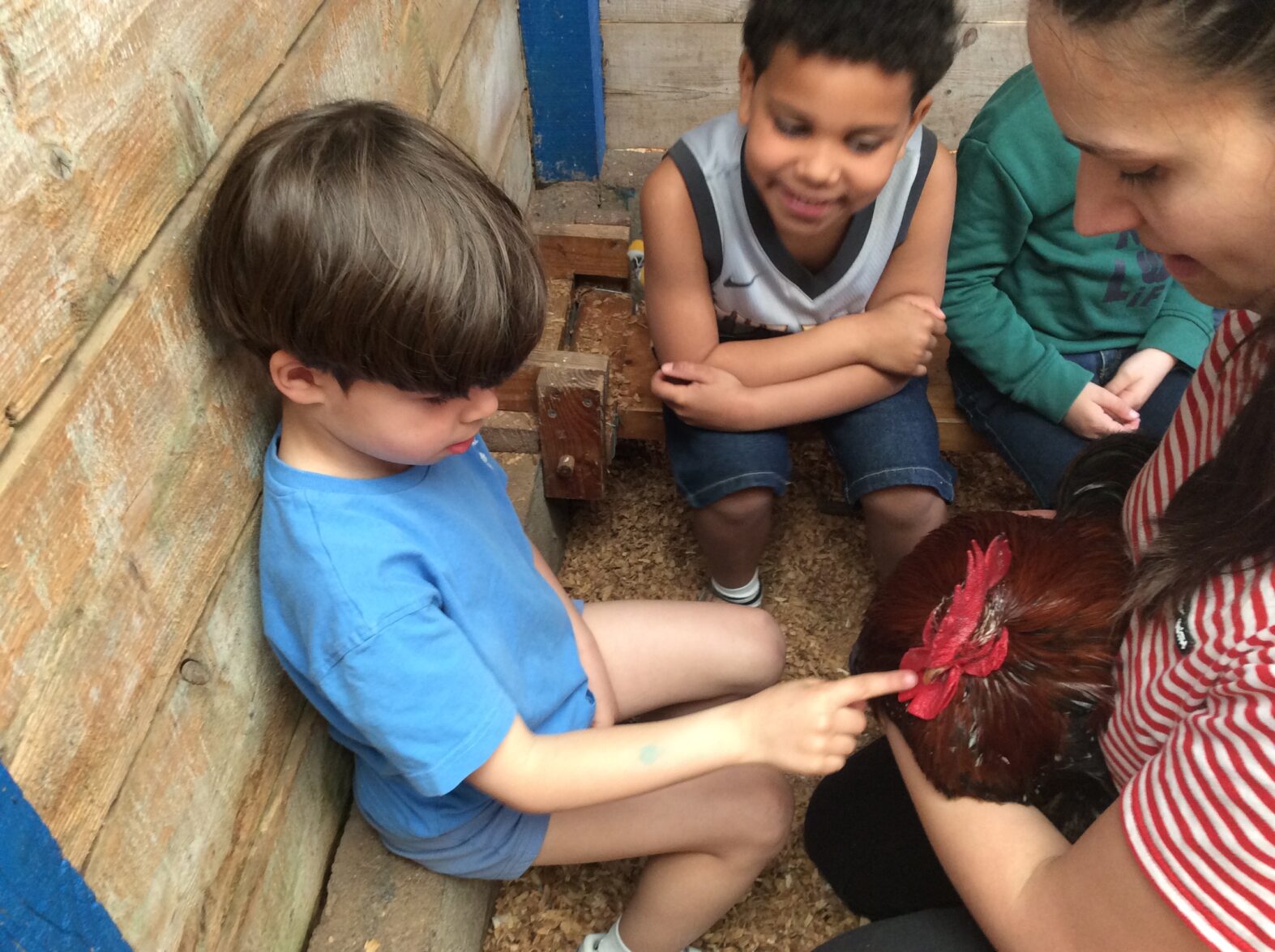 Mardi 7 avril les élèves de grande section se sont rendus à la ferme de la Ville Oger afin de de participer à un atelier sur le thème de la basse-cour. Au programme : connaissances générales sur les ovipares, cycle de reproduction, nourrissage (nous avons égrainé des épis de maïs, rajouté du pain rassis, de la farine de blé que nous avons moulue puis distribué tout ça dans la basse-cour aux oies, poules, canards, dindons et pintades). reconnaissance des différents œufs des volailles de la basse-cour…. Ce travail se poursuivra à la rentrée puisque nous aurons la chance d’avoir une couveuse en classe.